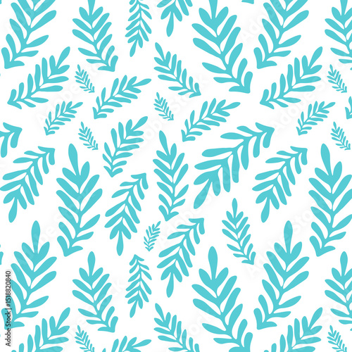 © Csa, Fototapeta premium Seamless turquoise light Green Leaf Pattern with White Background