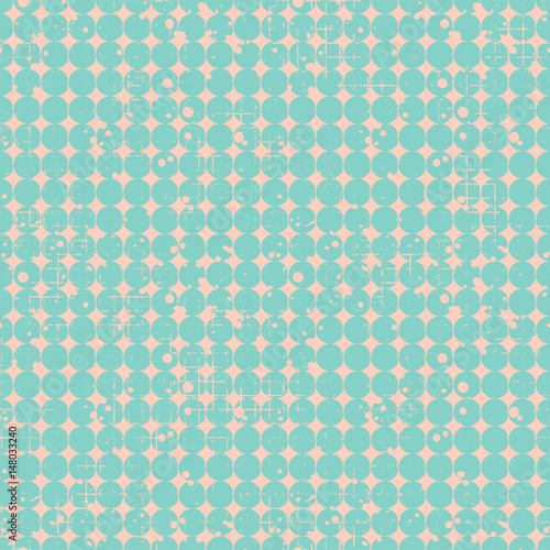 Fototapeta premium Seamless vector dotted pattern. Creative geometric background with circles. Grunge texture with attrition, cracks and ambrosia. Old style vintage design. Graphic illustration.