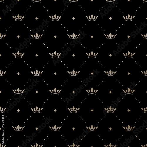 © sonyakamoz, Naklejka premium Seamless vector gold pattern with king crowns