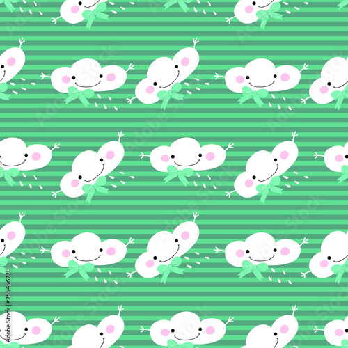 Obraz premium seamless vector pattern kawaii white clouds on a green background