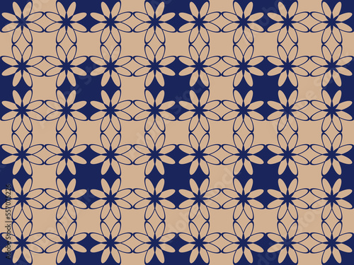 © Alina, Fototapeta premium Seamless vector pattern. Line floral pattern seamless background flowers motif. Textile swatch. Modern lux Fabric design. Vector illustration. Abstract geometric texture. Dark Blue Beige 10 eps. Tile