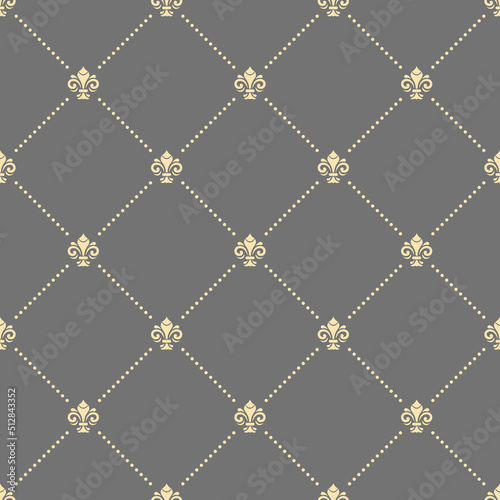 © Fine Art Studio, Naklejka premium Seamless vector pattern. Modern geometric ornament with royal lilies. Classic gray and yellow background