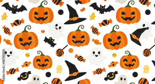 Naklejka premium Seamless Vector Pattern of Halloween Icons