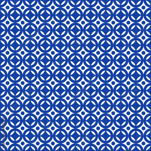 Fototapeta premium Seamless vector pattern of white and blue elements on a blue background.