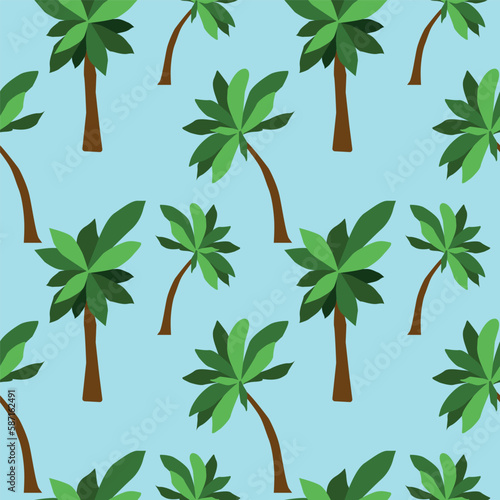 Obraz premium Seamless vector pattern. Palm trees on a blue background. Flat style,...