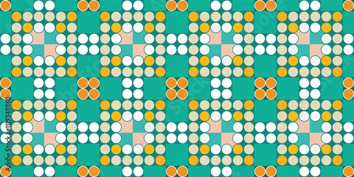 Fototapeta premium Seamless vector pattern texture background with geometric shapes, colored in...