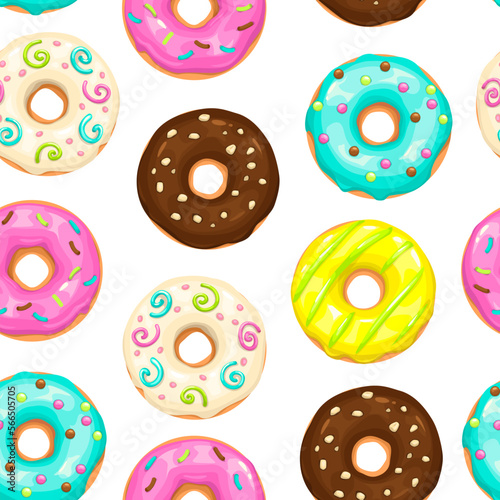 © lilu330, Fototapeta premium Seamless vector pattern with cute colorful donuts
