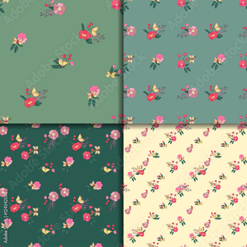 Fototapeta premium Seamless Vintage Wildflowers Pattern Set