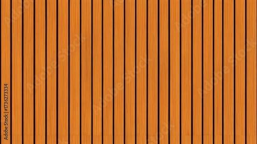 © Inka, Naklejka premium SEAMLESS wall panel pattern, slim vertical slats in orange wood with natural fluted texture, modern interior background for home & office, decorative accent wall or acoustic panel design.