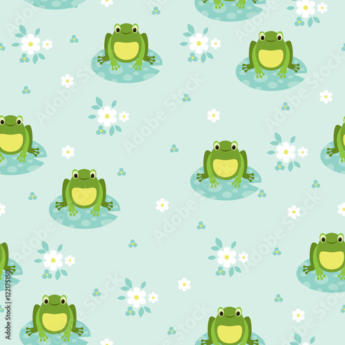 Obraz premium Seamless wallpaper green frog on a blue lake