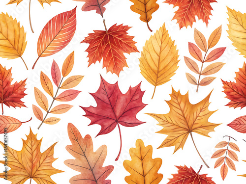 Fototapeta premium Seamless Watercolor Autumn Leaves Pattern