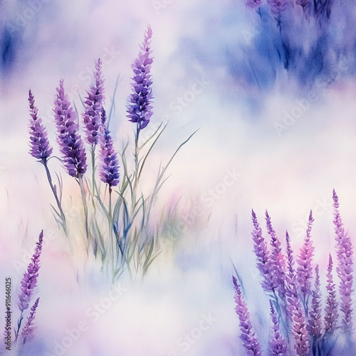© Алена Харченко, Fototapeta premium seamless watercolor floral primitive wallpaper