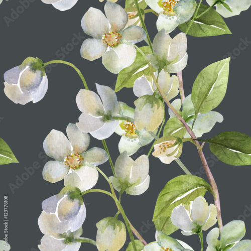 © svemar, Fototapeta premium Seamless watercolor flowers of rosemary on a colored background