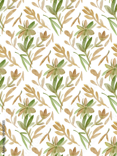 © Margarita, Fototapeta premium Seamless watercolor leaf pattern. A hand-drawn botanical illustration.