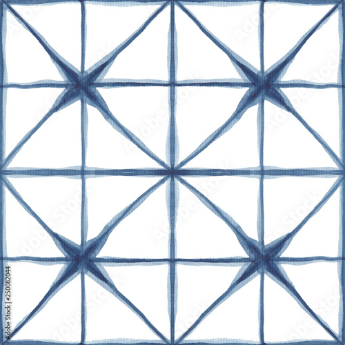 Fototapeta premium Seamless watercolor pattern shibori style with abstract indigo squares