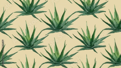 © Anastasiia, Obraz premium seamless watercolor pattern with aloe