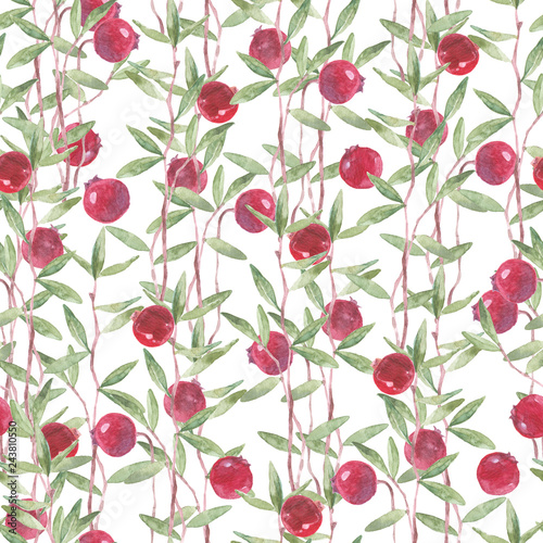Obraz premium Seamless watercolor pattern with cranberry on a white background.