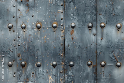Fototapeta premium Seamless weathered metal surface with rivets. The surface features a...