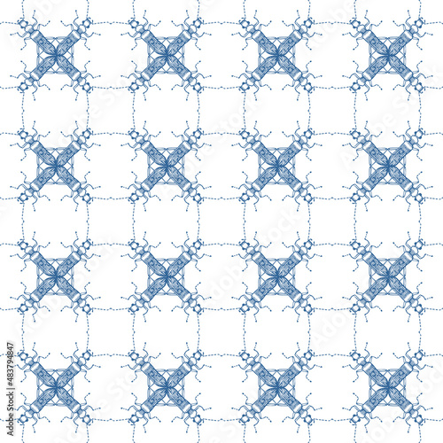 © yulyyulia, Fototapeta premium Seamless white and blue. The pattern consists of drawings of beetles. Vector.