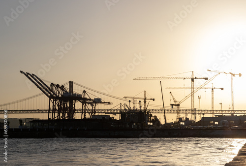 © KONSTANTIN SHISHKIN, Obraz premium Seaport against the backdrop of an evening sunset