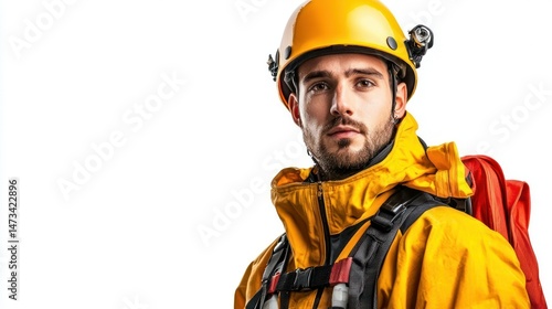 © Soklin, Fototapeta premium Search and rescue officer isolated on white background