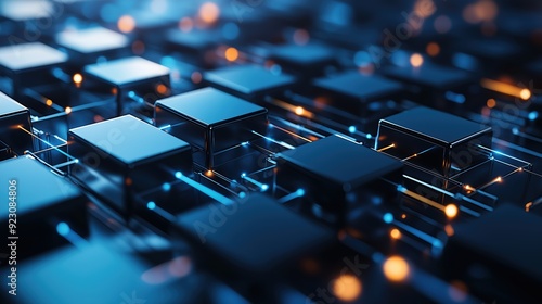 Obraz premium Search engine structure with interlocking 3D components, data flowing through, Search Engine, tech innovation