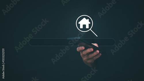 Fototapeta premium Search technology to improve work efficiency Using the real estate search function on your website, big data, automation