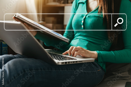 © Nuttapong punna, Naklejka premium Searching Browsing Internet Data Information Networking Concept with blank search bar.