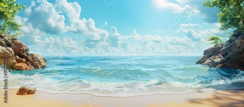 Fototapeta premium Seascape and sandy beach with a front view in a summer themed copy space image