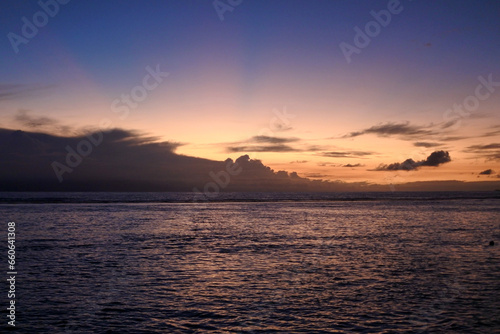 © Sasha devet, Fototapeta premium Seascape at sunset. Sunset on the island of La Digue.