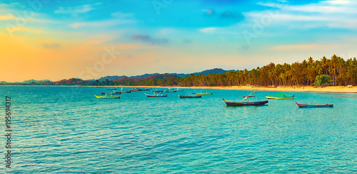 © Olga Khoroshunova, Fototapeta premium Seascape at sunset time. Beautiful landscape of the Indian ocean. Panorama