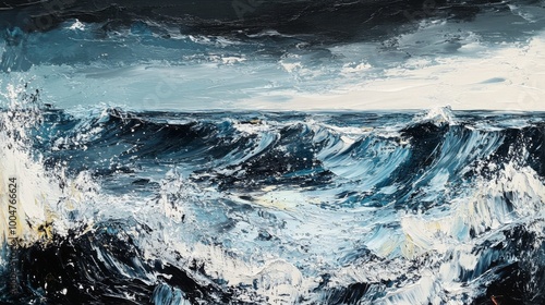 Obraz premium Seascape fading to black with cool colors and bold palette knife strokes. -
