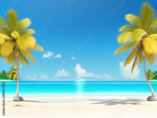 Fototapeta premium Seascape, idyllic vacation, sandy beach, two palm trees