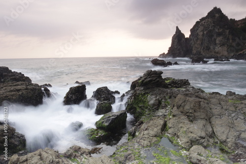 Fototapeta premium seascape of coral reefs exposed to slow-moving ocean waves
