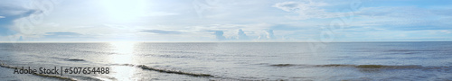 © vach, Obraz premium seascape or ocean with beach in horizontal scenic view and sun