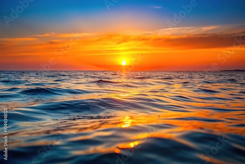 Obraz premium Seascape orange sunset over the sea with sun setting, creating depth of field effect
