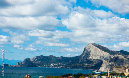 Naklejka premium Seascape rock, beach and sea. Travel and Leisure.