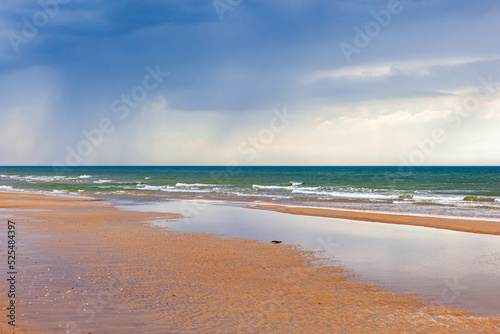 © Lars Johansson, Obraz premium Seascape view at a sand beach with rain in the horizon