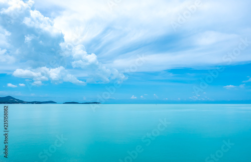 © jeafish, Fototapeta premium Seascape view under cloudy blue sky