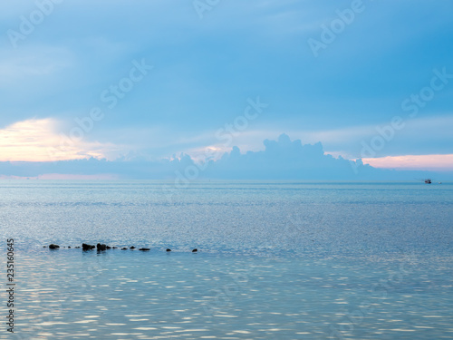 © jeafish, Obraz premium Seascape view under twilight evening sky