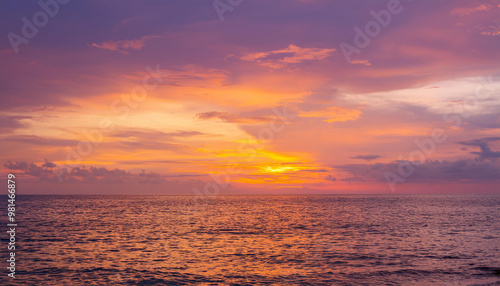 © hardvicore, Obraz premium Seascape with beautiful sunset or sunrise. Sea water.
