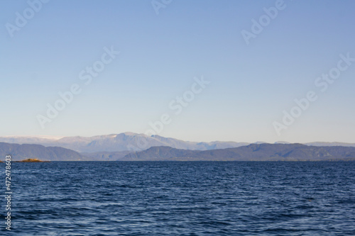 © raquel, Fototapeta premium Seascape with mountains on the background