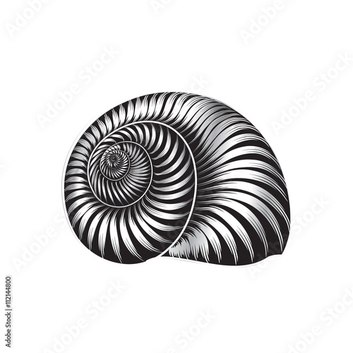 © Terriana, Obraz premium Seashell nautilus isolated Patterned engraved vector illustration