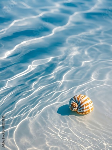 © Becky, Obraz premium Seashell Resting on Sandy Beach Under Clear Water