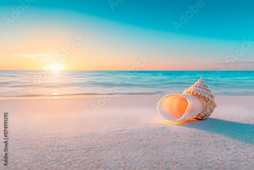 © share, Obraz premium Seashell Sunset Beach Background Image