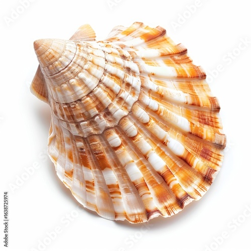 © ulfa, Obraz premium Seashell, top-down view, pale orange, cream, and tan, fan-like ribs