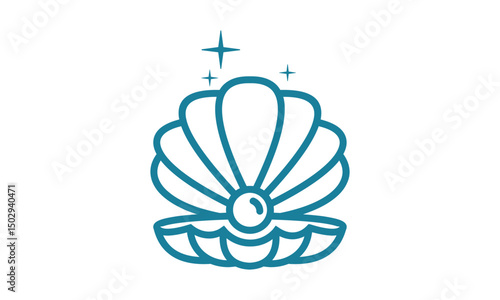 © ellistya, Fototapeta premium seashell with pearl outline icon vector template