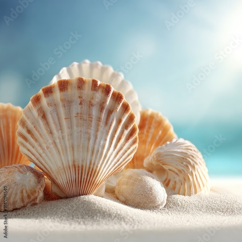 © Nathan, Obraz premium Seashells on Sandy Shore (1)