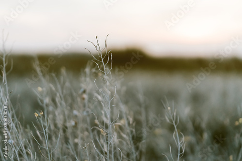 © KseniaJoyg, Fototapeta premium Seashells on the dusty white grass in the rays of the setting sun, natural background