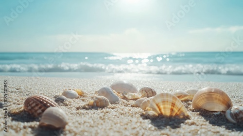 © paukan, Obraz premium Seashells on the Sandy Beach